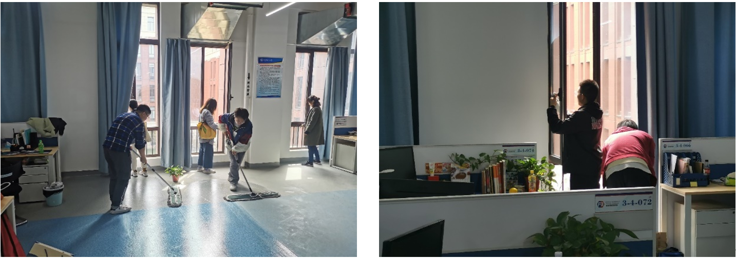 常新宇同学:在这次大扫除中同学们尽心尽力,在大家共同努力下,看着地面上的灰尘一点点被清扫干净,门上玻璃一扇扇的亮起来,心情也变得愉快起来了。在繁重的科研任务之外,进行适当的劳动有利于培养同学们的劳动意识,更好的传承中华民族勤劳的品质。我们应当在生活中通过一些小事来培养劳动的习惯,只有亲身经历,方知劳动不易,才能够真正的尊重劳动成果。通过自己的双手为大家提供一个干净舒适的科研环境,美化创新港是极有意义的!