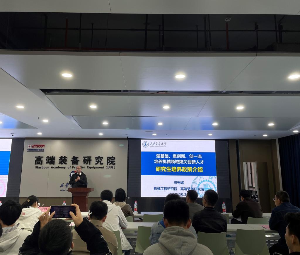 接着,周光辉副院长对研究生培养工作进行了分享。周院长首先强调了研究生教育是国家人才与科技竞争的具体体现,接着对学院的现状以及硕士、博士们的培养目标、培养模式、培养流程和培养过程管理进行了具体介绍,希望同学们能够珍惜学习的机会,努力成为国之栋梁。