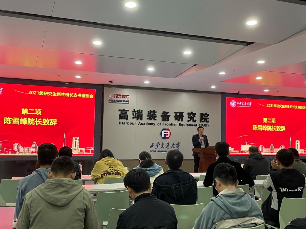会议伊始,陈雪峰院长对新生们的到来表示热烈欢迎与祝贺,并对大家提出了三点要求。首先作为研究生学生干部,不仅需要干的好,还要学会从认识的高度来思考问题、部署问题,进一步从事工作,为将来的成长与发展奠定基础;其次是要有理想与信念,在一流大学的新形态,一流学科的新格局,立德树人的新方针,科教融合的新架构以及国际合作交流的新范式,即“五新”的影响下,开展科研与学生工作;最后,陈院长希望班长支书们在一流大学与一流学科的环境背景以及校-院-所研究生培养格局中,带领同学们做好班级建设及科学研究工作。