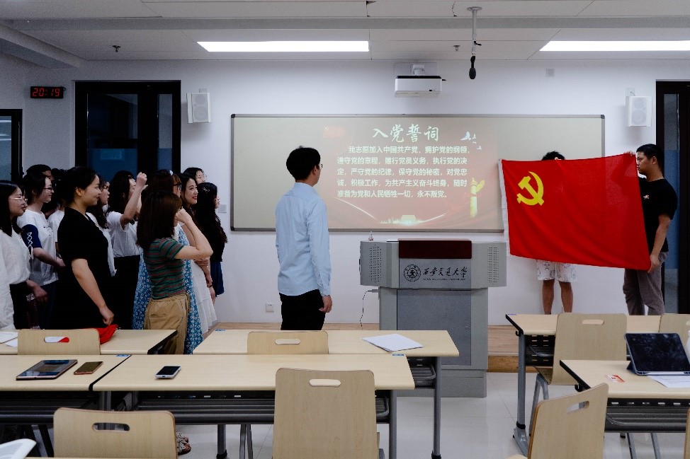 2021年6月18日,中共中央总书记,国家主席,中央军委主席习近平同志参观“‘不忘初心、牢记使命’中国共产党历史展览”时带领党员领导同志重温入党誓词。作为awc777万象城娱乐官网新时代的学子,深入贯彻落实总书记讲话精神。在中国共产党百年华诞之际,参加学习的支部全体党员同志重温入党誓词,面对党旗庄严的宣誓,回忆自己的入党初心。